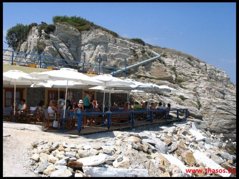 A vacsorát ezen a napon Limenariaban ejtettük meg egy part menti étteremben. A kaja itt is finom volt. Az árak hasonlóak a többi helyen tapasztaltakhoz. Mi tavernákban általában mindig kijöttünk 30-35 (max. 40) euróból úgy, hogy mindenki kapott 1-1 üdítõt, általában négyen ettünk egy salátát (tzaziki, tarama, sajt,....)  elõételnek és mindenki evett fõételt.