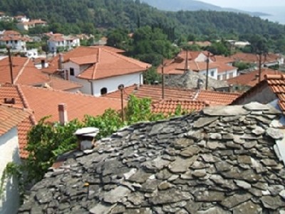 Az Ypsario előtt egy forrásnál frissíthettük fel magunkat és megettük az ebédre hozott szendvicseket. Utunkat folytatva hamarosan elértük Thassos sziget legmagasabb pontját. A hegycsúcsig éppen nem lehet felmenni autóval, kizárólag gyalogszerrel közelíthető meg a legmagasabb hegytető. Szerintem mindegyikőnket lenyűgözött a látvány, amelyik elénk tárult a magasból.Az egész öblöt beláttuk Skala Potamiától Skala Panagiáig. Gyönyörű, szavakkal le nem írható élmény. Valaki fennhagyott egy távcsövet, azzal még az apartmanunkat is megkereshettük a távolban. Az időjárás is kezdett jobbra fordulni, kikandikált a nap a felhők mögül. Gyönyörködtünk, fényképeztünk. Egyszer csak Ági kiabálására lettünk figyelmesek, hogy menjünk már, mert még sok látnivaló vár ránk. Vonakodva bár, de elindultunk lefelé. Az Ypsariótól egy kősivatagon keresztül jutottunk el a félig halott hegyi faluba Kastro-ba. Valaki egyszer azt írta egy másik faluról, hogy ott állni látszik az idő. Nekem itt támadt hasonló érzésem.