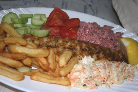 Gondolkoztunk hogy hol vacsorázzunk, volt egy erőszakos pincér srác aki minden alkalommal már pofátlan módon próbált beinvitálni minket naponta akár négyszer, oda semmiképp nem akartunk menni, gondoltuk bemegyünk a Mouses-es felszolgáló új helyére, de ő meg nem dolgozott éppen, így visszasétálva, mivel az eső lába megint lógott, inkább az erőszakospincér melletti tavernába ültünk be... csakazértis. :) A. apróhalat evett, gavrost, én pedig a kardhallal kötöttem közelebbi ismeretséget, életemben először, többek ajánlására. ISTENI FINOM VOLT!