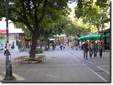 Pezsgő élet van ebben a városban, fiatal város (egyeteme van), rengeteg fiatal sétál az utcán. Nagyon barátságos sétálóutcái vannak, sok üldögélőhellyel, a fák törzse köré minden 30 méteren padot szerkesztettek. Fényképeken láttam egy bájos üldögélős hidat, de az sajnos a mi lábunknak messze volt, így saját fényképem nem lett róla. A Korona Hotel ismét belopta magát a szívünkbe. A maradék levát el akartuk költeni, de nem nagyon volt mire, nagyobb üzletet nem találtunk. Vettünk háromliteres Fantát, kétliteres műanyagpalackos Kamenitza sört, meg egy üveg vörösbort, ez utóbbi még vár a megkóstolásra. Az étteremben finom bort adtak, de a híres melniki bort sem az étterem, sem a bolt nem tartotta, ahhoz úgy látszik, Melnik híres városába be kellett volna menni.