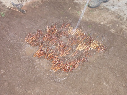Betakarják agyagos homokkal. Bőségesen beöntözik, hogy jól beiszapolódjon.